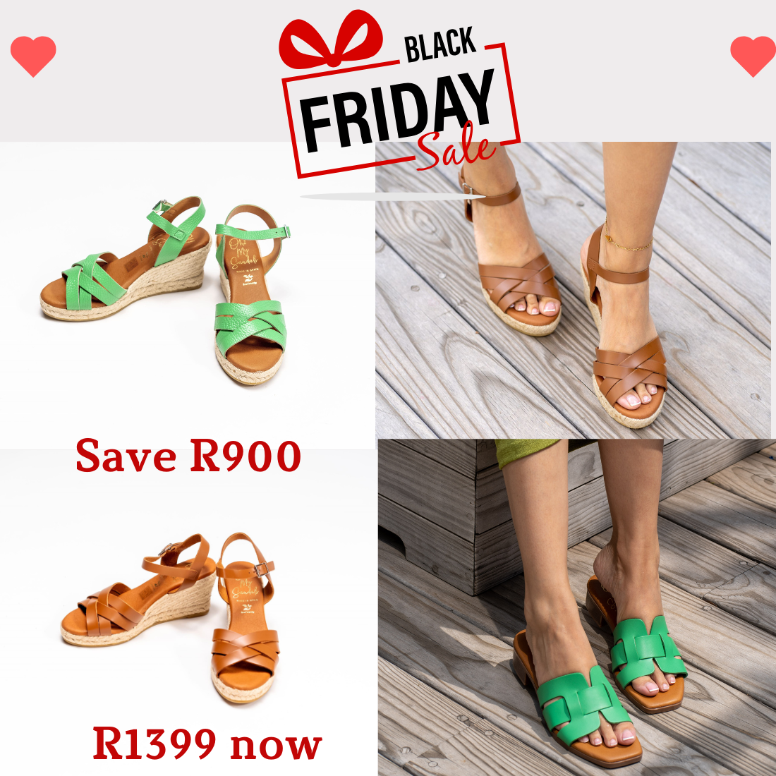 5661 Spanish leather crossed strap sandals/wedge in camel and Black (new)
