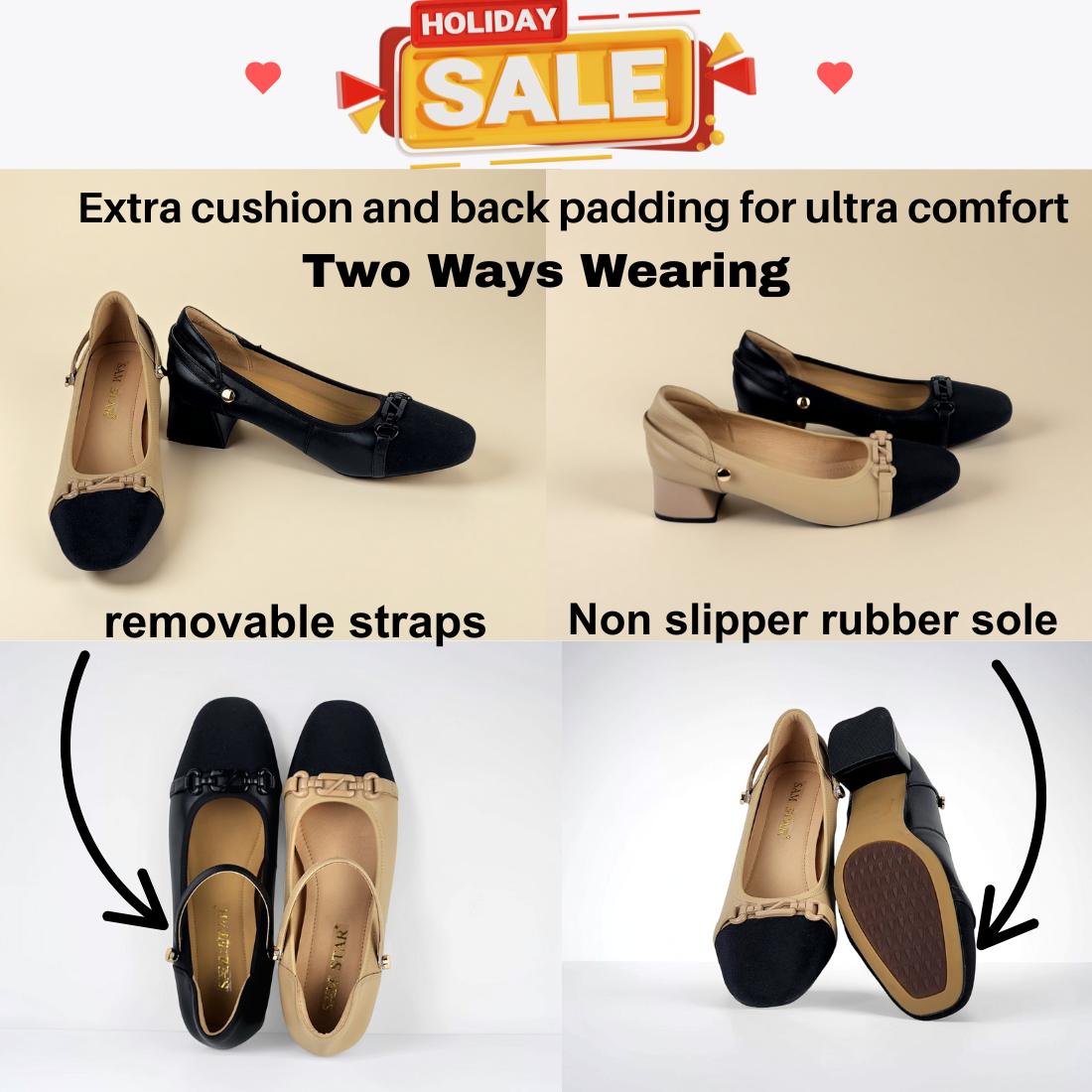 SS25001 Leather pumps with details and removable straps block heel (SALE)