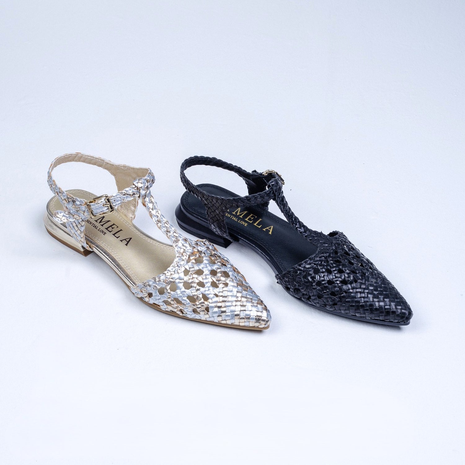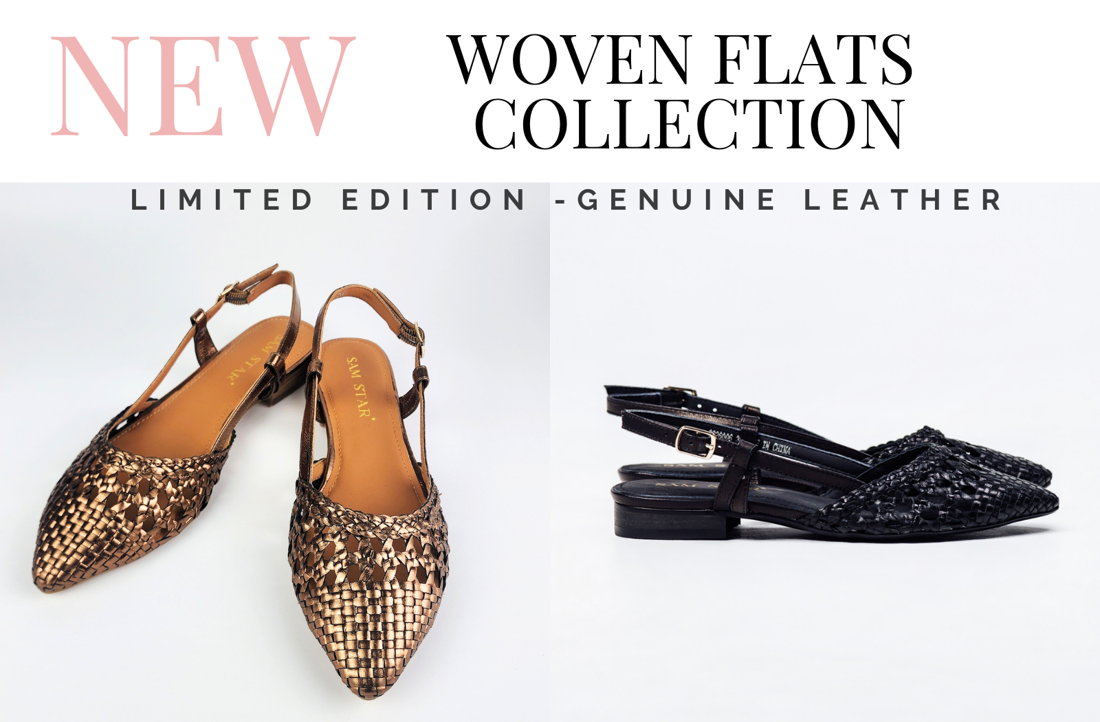 New style of leather-woven flats now available